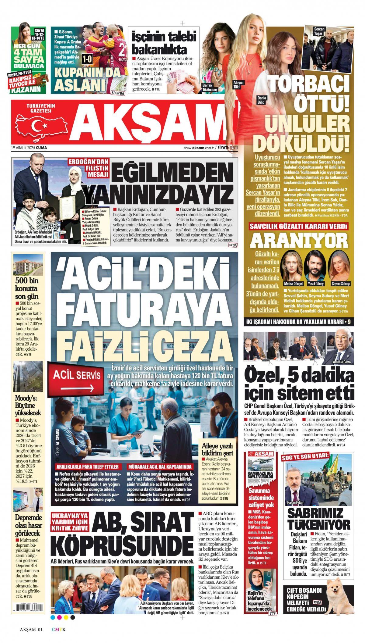 Akşam Gazetesi 19 Aralık 2025 Günü Manşeti