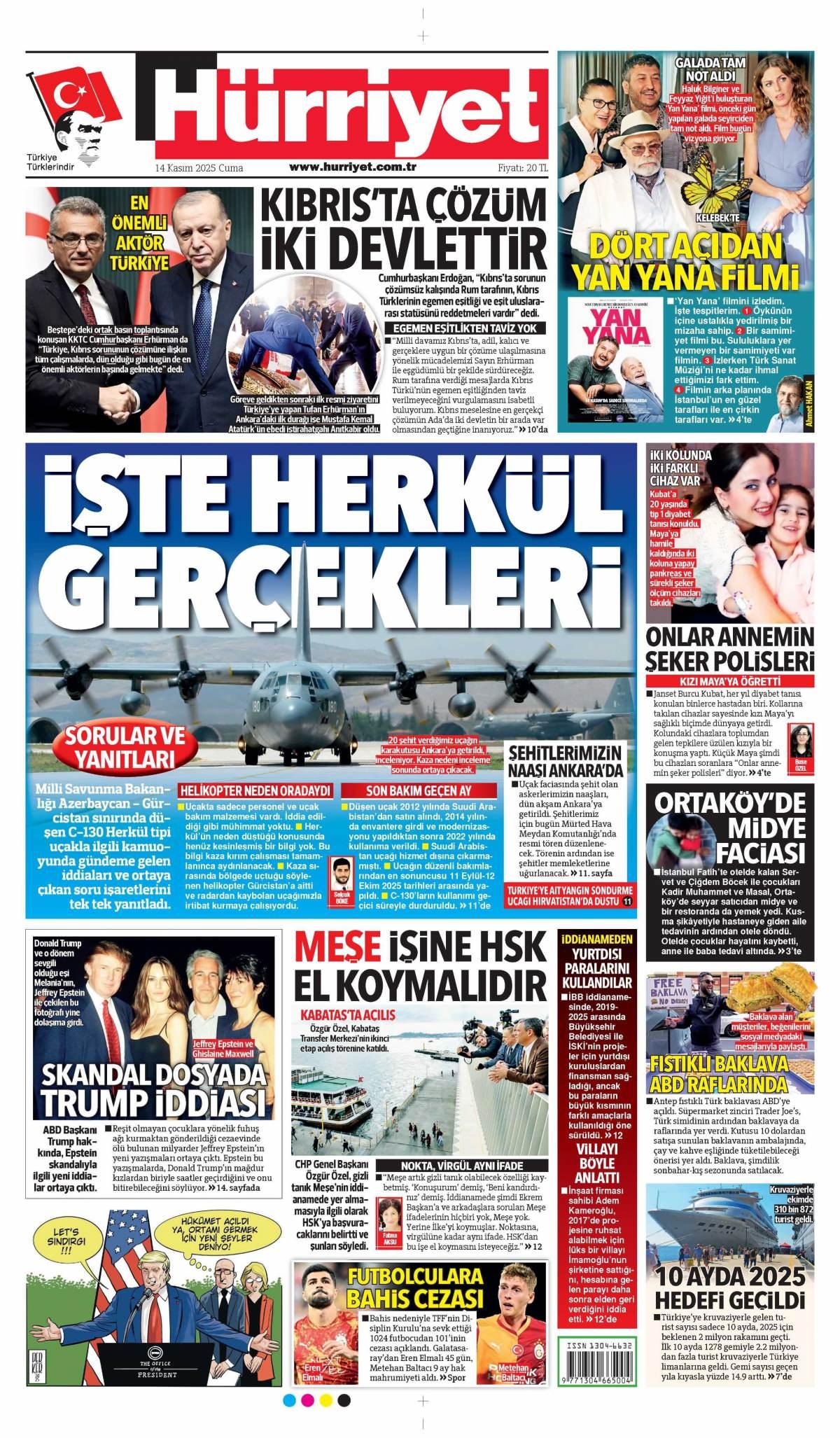 Hürriyet Gazetesi 15 Kasım 2025 Günü Manşeti