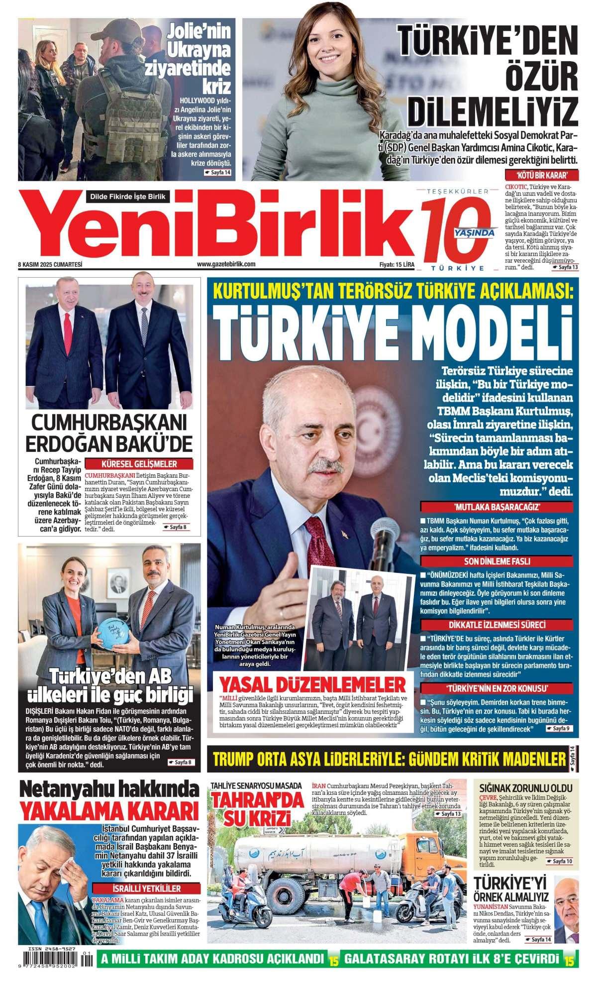 Yeni Birlik Gazetesi 8 Kasım 2025 Günü Manşeti